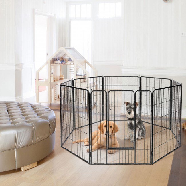 It is durable and will serve you for a long time. The pet playpen is specifically designed for ultimate versatility in any situation even to give training for your pet. 2 lock bolts on the door keeps pets safely inside. The wire design gives pets a good vision and owners can also keep an eye on their pets. This pet playpen is easy to assemble without any tools and is also highly portable.