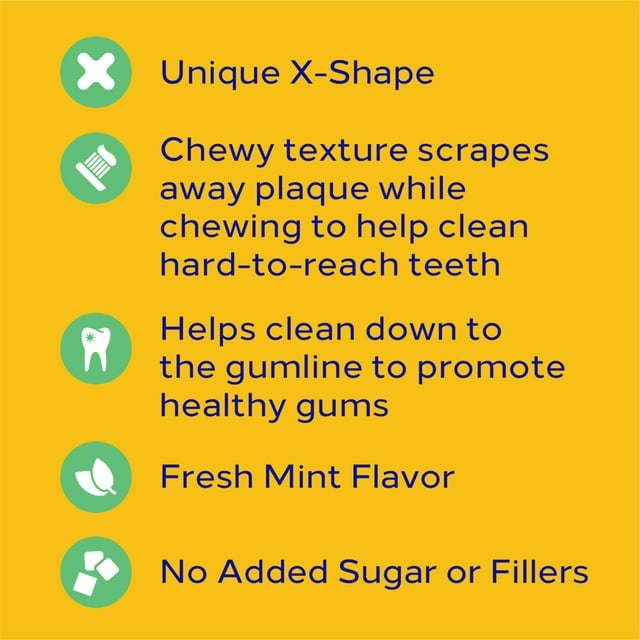 DENTASTIX Fresh Treats are the minty fresh dental treats that make snack time even better for you and your big dog. Their chewy texture and unique X-shape design is clinically proven to reduce plaque and tartar buildup in canines, so treat time is also part of a healthy dental care routine and promotes better oral health and oral hygiene!