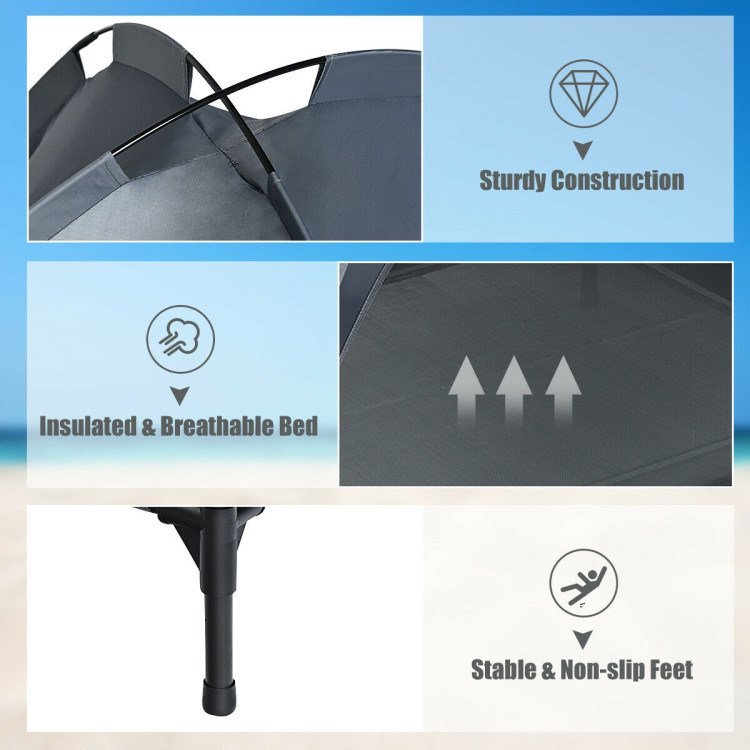 4.Indoor and Outdoor Application: The pet bed is lightweight and easy to move and carry, which can be used both indoors and outdoors. It provides a place for your pet to relax, ideal for camping, lawns, and beaches. In addition, the canopy of the dog bed can be quickly removed to be a sturdy indoor bed.