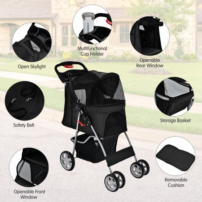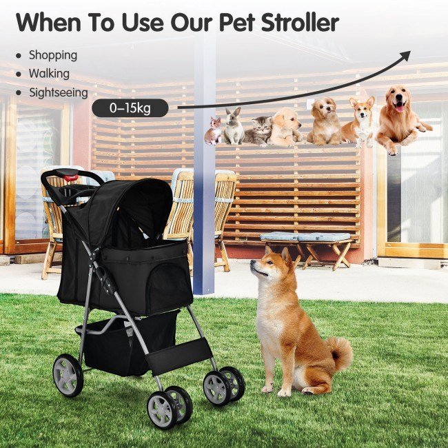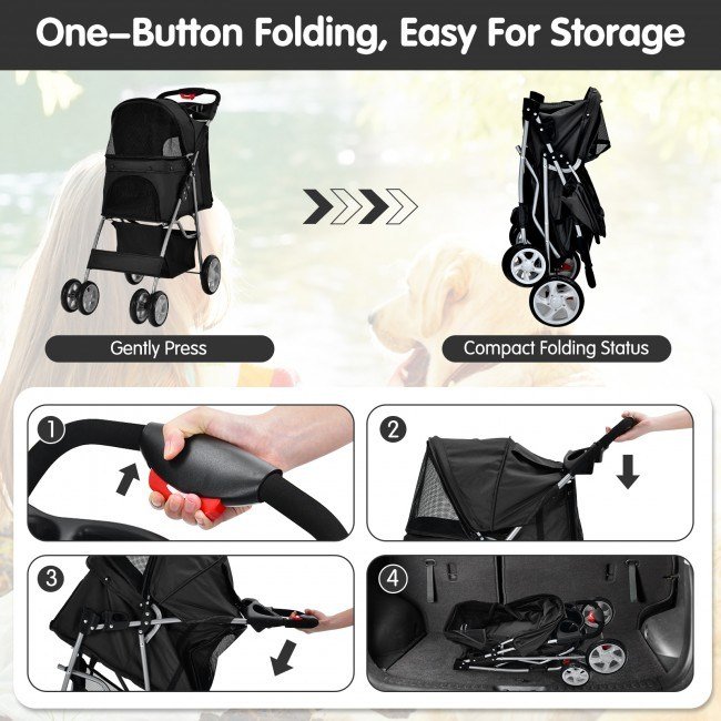 Home > Foldable 4-Wheel Pet Stroller with Storage Basket