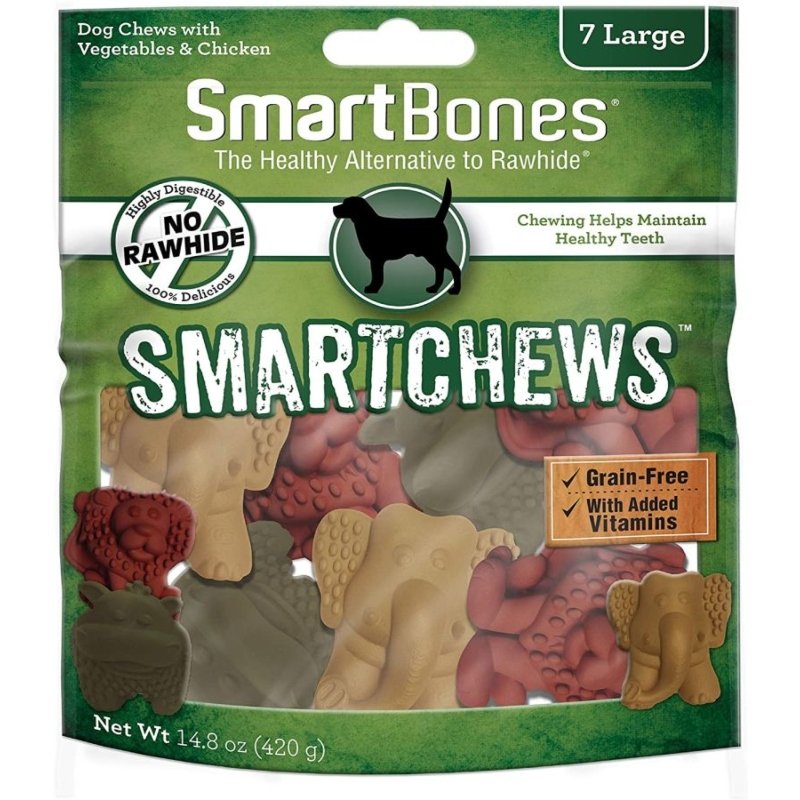SmartBones Large Smart Chews are healthy, delectable treats made with real chicken, wholesome veggies, and no rawhide. This allows easier digestion while still providing a satisfying chewing experience for your furry friend. Smart Chews also help maintain healthy teeth!