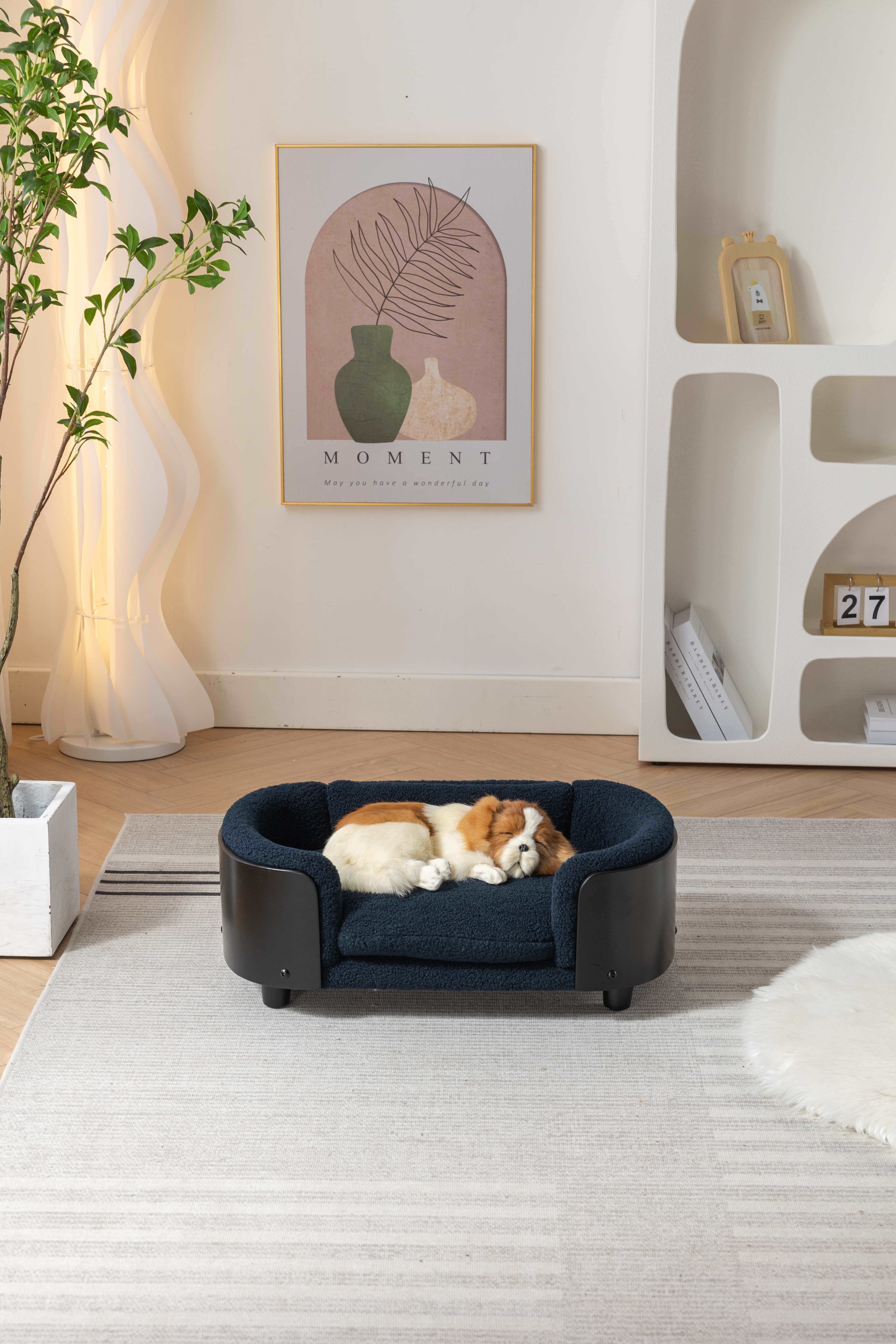Scandinavian style Elevated Dog Bed Pet Sofa With Solid Wood legs and Black Bent Wood Back, Cashmere Cushion,Small Size